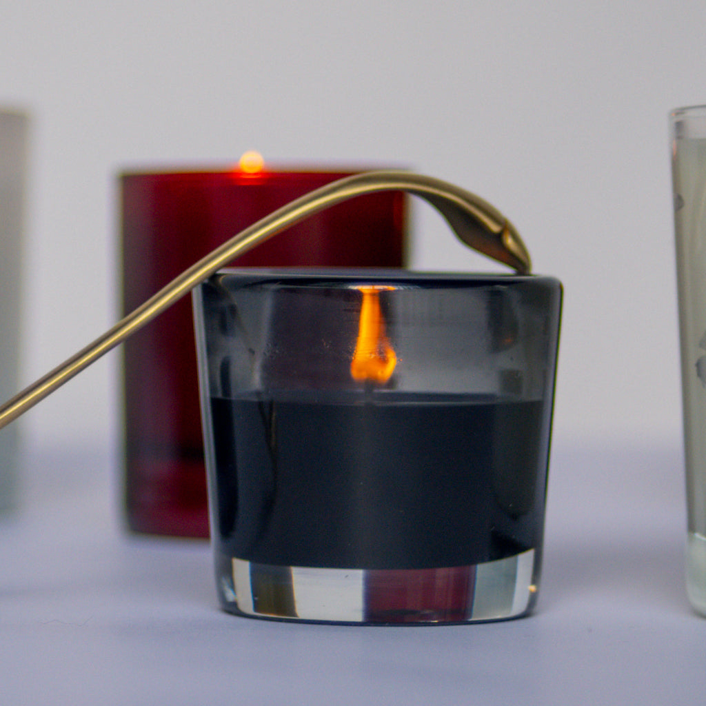 While the candle is still burning, allow the flame to gently melt the wax back into the candle, from any areas where it has collected onto your SWAND.